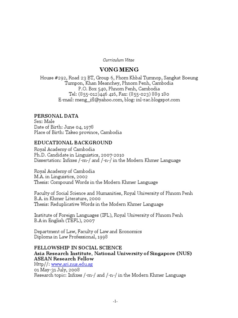 Cv Sample Khmer Pdf