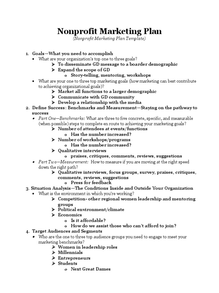 Nonprofit Marketing Plan Template Pdf